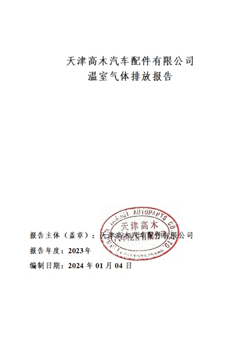 天津高木汽車配件有限公司2023年度溫室氣體排放報告
